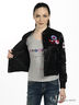 Детали: небольшой ворот-стойка, длинный рукав, застежка на кнопки; ворот, манжеты и низ изделия - трикотажные резинки; два передних кармана; декорирована множественными нашивками, вышивкой и элементами