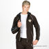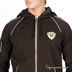 Стильная ветровка с капюшоном из мягкого плотного трикотажа. У ветровки рукава декорированы контрастными лампасами в тон подклада у капюшона, яркая застежка-молния контрастного цвета в тон декоративным отстрочкам. На груди фирменный знак марки, по бокам врезные карманы.