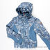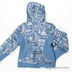 Прекрасная ветровка для девочки оригинальной расцветки. Воротник стойка с отстегивающимся капюшоном на кулиске. Куртка декорирована трикотажными вставками, длинный рукав с небольшой трикотажной манжетой, два прорезных кармана, подол так же посажен на резинку.