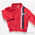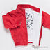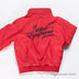 Красная сторона из полиамида. Два передних кармана на молнии. Контрастные вставки на полочке, нашивки. Вышивка и аппликация на спинке.