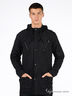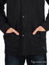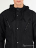 Легкая ветровка из фактурного материала. Капюшон с кулиской по краю. Застегивается на молнию и планку на пуговицах. Длинные рукава реглая на манжетами на кнопке. Два прорезных кармана на молнии, два больших накладных с клапанами на кнопках. Низ изделия затягивается на кулиску.