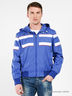 Стильная ветровка из тонкой, плотной ткани. Модель дополнена капюшоном на кулиске. Застежка на молнию. Длинные рукава с манжетами. Район локтей дополнен нашивкой. На полочках два прорезных кармана с листочками на кнопках. Ветровка декорирована контрастными вставками. Манжеты и низ изделия выполнены из плотного, фактурного трикотажа. Модная вещь из качественного, приятного на ощупь материала.