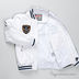 Модель прямого кроя застегивается на молнию. Два передних кармана на молнии, один внутренний карман на липучке. Ворот, манжеты и низ изделия - трикотажные резинки. Декоративные элементы: нашивка и вышивка на полочке, лампасы на рукавах, вышивка на спинке. Хлопковый подклад.
