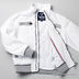 Модель прямого кроя с воротником-стойкой застегивается на молнию. Манжеты и низ изделия - трикотажные резинки. Два передних кармана на молнии, два нагрудных кармана на молнии, один внутренний карман. "Раскрытые" декоративные молнии по бокам основных. Декоративная нашивка на полочке. Хлопковый подклад.