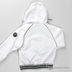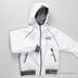 Модель прямого кроя с капюшоном застегивается на молнию. В край капюшона вставлен регулирующий шнурок. Манжеты и низ изделия - трикотажные резинки. Два передних кармана на молнии, один внутренний кармана на липучке. Декоративная вышивка на полочке. Хлопковый подклад.