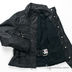 Приталенная модель с воротником-стойкой застегивается на молнию и кнопки. Два нагрудных кармана на кнопке. На уровне талии пришиты петли для ремня, вставлен поясок. В низ рукава вшита молния. Декоративные тканевые элементы на кармашках, поясе и низе изделия. Стразы на левом плече. Хлопковый подклад.
