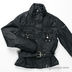 Приталенная модель с воротником-стойкой застегивается на молнию и кнопки. Два нагрудных кармана на кнопке. На уровне талии пришиты петли для ремня, вставлен поясок. В низ рукава вшита молния. Декоративные тканевые элементы на кармашках, поясе и низе изделия. Стразы на левом плече. Хлопковый подклад.