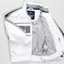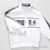 Модель прямого кроя с воротником-стойкой застегивается на молнию. Манжеты и низ изделия - трикотажные резинки. Внутренняя часть воротника трикотажная. Два передних кармана. Лампасы на рукавах. Декоративная вышивка и нашивки на полочке. Хлопковый подклад.