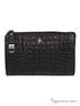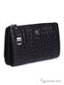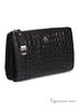 Внутри два больших отделения с кармашками для визиток и телефона, по центру карман на молнии. Верхняя молния закрывается на хлястик в замочек. В комплекте ремешек для переноски визтки на запястье.