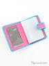 Стильная визитница из натуральной кожи с контрастными вставками на 20 визиток. Застежка с клапаном на кнопку.