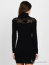 Детали: ворот-гольф из рибаны, длинный прямой рукав-реглан, полочка и спинка декорированы гипюровым кружевом