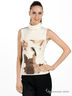 Детали: без рукавов, ворот хомут, на лицевой стороне принт.