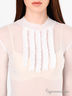 Детали: ворот-стойка, длинный прямой рукав, полочка декорирована жабо из мелких рюш