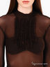 Детали: ворот-стойка, длинный прямой рукав, полочка декорирована жабо из мелких рюш