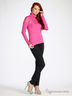 Яркая трикотажная водолазка, с длинными рукавами и воротником гольф. Края рукавов присборены на резинку. На полочке изделия – ажурная вставка.