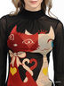 Детали: ворот-стойка, длинный прямой рукав, полочка декорирована оригинальным набивным рисунком в виде кошек