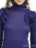 Детали: ворот-гольф, длинный прямой рукав, плечи декорированы рюшами