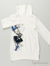Водолазка прямого силуэта выполнена из эластичного вискозного трикотажа средней плотности. Ворот гольф, длинный рукав посажен на манжету. Низ изделия посажен на резинку. Полочка украшена разнообразными декоративными элементами.