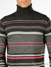 Трикотажная водолазка из легкого и теплого материала. Воротник хомут выполнен из трикотажа в рубчик. Длинные рукава с манжетами. Декорирована светло-серыми и ярко-розовыми полосками.