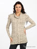 Удлиненная трикотажная водолазка с оригинальным принтом. Воротник хомут. Длинные рукава с воланами на плечах. Слегка присборены на талии, что позволяет подчеркнуть фигуру.
