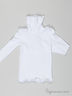 Нежная водолазка с двойным воротником гольф прекрасно дополнит юбку, брюки. Низ воротника, манжеты и низ окантованы серебристой нитью. На горловине воротника красивая вышивка в виде ветки с цветочками.