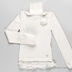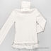 Детали: ворот-стойка, длинный рукав, декоративный тканевый цветок на полочке, нижняя часть изделия украшена прозрачной оборкой с тесьмой