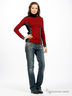 Стильная водолазка с воротником гольф и длинными рукавами. Манжеты рукавов и низ изделия выполнены из трикотажной резинки оформленной в рубчик.
