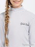 Классическая водолазка прямого кроя в горошек. Ворот-стойка. Полочка декорирована узором из страз.