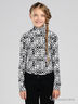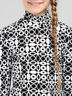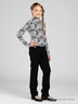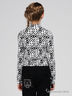 Узорчатая модель прямого кроя с воротом-стойкой и длинным рукавом.
