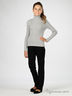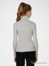 Теплая водолазка из трикотажа в рубчик стильного серебристо-серого цвета. Воротник хомут. Длинные рукава. Выполнена из приятного на ощупь материала.