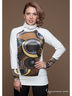 Великолепная водолазка. Широкий ворот-гольф, низ изделия и длинный рукав на манжете, на полочке оригинальная вставка с рисунком. Отличный повседневный вариант.