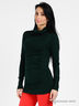 Стильная водолазка приталенного кроя из эластичного трикотажа средней плотности. Цельнокроеный ворот-гольф, длинный рукав и низ изделия на манжете. Полочка декорирована вставкой со стразами в тон. Универсальный вариант подойдет как для повседневной носки, так и для прогулок.