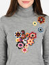 Стильная водолазка с воротом "гольф" и длинным рукавом. Изделие выполнено из шерстяного трикотажа средней плотности. Полочка украшена пришитыми вязаными цветами. Отличный вариант для тех, кто любит комфорт и качество.