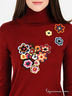Стильная водолазка с воротом "гольф" и длинным рукавом. Изделие выполнено из шерстяного трикотажа средней плотности. Полочка украшена пришитыми вязаными цветами. Отличный вариант для тех, кто любит комфорт и качество.
