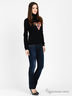 Стильная водолазка с воротом "гольф" и длинным рукавом. Изделие выполнено из шерстяного трикотажа средней плотности. Полочка украшена пришитыми вязаными цветами. Отличный вариант для тех, кто любит комфорт и качество.