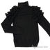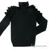 Детали: воротник хомут, плечи украшены воланами, манжеты рукавов и низ изделия оформлены в рубчик