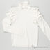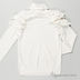 Детали: воротник хомут, плечи украшены воланами, манжеты рукавов и низ изделия оформлены в рубчик