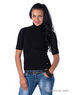 Очаровательная водолазка с короткими рукавами и воротником "гольф". Модель облегающего фигуру кроя выполнена из качественного материала привлекательной расцветки. Отличный вариант на каждый день.