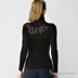 Черная водолазка из тонкого трикотажа с оригинальным декором из маленьких металлических заклепок, образующих надпись Gossip Girl. Высокий воротник-стойка, прямой длинный рукав. Отлично сочетается с джинсами.