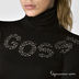 Черная водолазка из тонкого трикотажа с оригинальным декором из маленьких металлических заклепок, образующих надпись Gossip Girl. Высокий воротник-стойка, прямой длинный рукав. Отлично сочетается с джинсами.