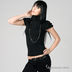 Водолазка с коротким рукавом, рукав украшен рюшами.