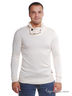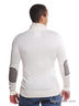 Мягкая и теплая водолазка - база зимнего гардероба. Стильная модель из теплого трикотажа с высоким воротником, красиво застегивающимся на пуговицы. Нашивка внизу. Контрастные налокотники. Облегающий крой.