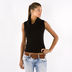 Водолазка в рубчик с длинным воротником и без рукавов.