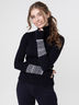 Вязаная водолазка с вывязанными митенками. Изделие выполнено из пряжи с содержанием эластана. Крой полуприталенный. Длинные рукава со скандинавским рисунком, с отверстием для большого пальца. Длина изделия - около 65 см.