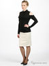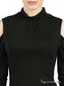 Водолазка приталенного силуэта, с воротником стойкой. По верхней части проймы рукав не вшит, а спадает качелями на плечико.