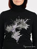 Классическая водолазка окутает Вас уютом и сделает Ваш образ нежным женственным и неповторимым. Ворот - хомут выполнен из трикотажной резинки в рубчик. На передней полочке набивной рисунок, украшенный стразами.