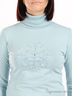 Классическая водолазка окутает Вас уютом и сделает Ваш образ нежным женственным и неповторимым. Ворот - хомут выполнен из трикотажной резинки в рубчик. На передней полочке набивной рисунок, украшенный стразами.