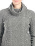 Детали: ворот-хомут в рубчик, полочка декорирована ажурной вязкой