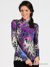 Детали: высокий ворот-стойка, длинный рукав, принты