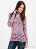 Элегантная водолазка из тонкого, приятного на ощупь трикотажа с оригинальным, ярким принтом. Модель приталенного силуэта. Ворот-гольф. Длинные облегающие рукава.